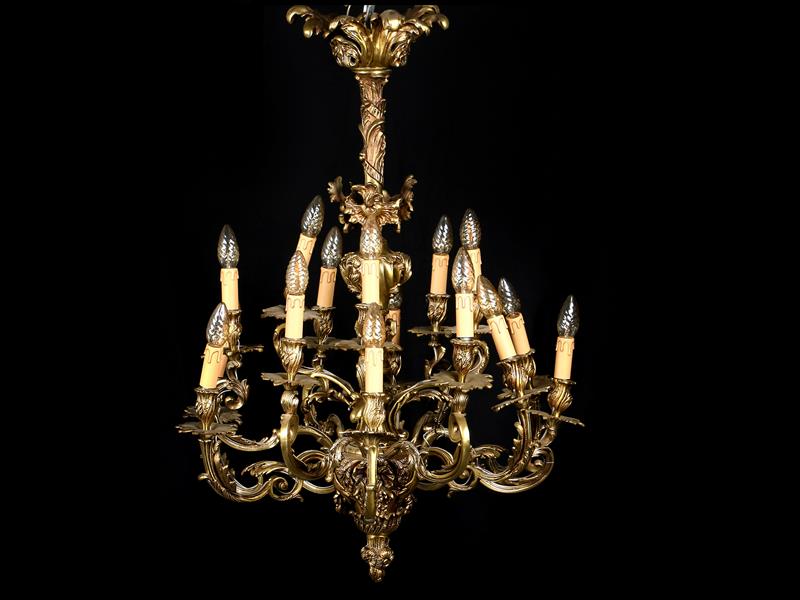 FRANSIZ. 19-20.YY. KABARTMA İŞÇİLİKLİ. 15 KOLLU VE 15 LAMBALI. H 92 CM.