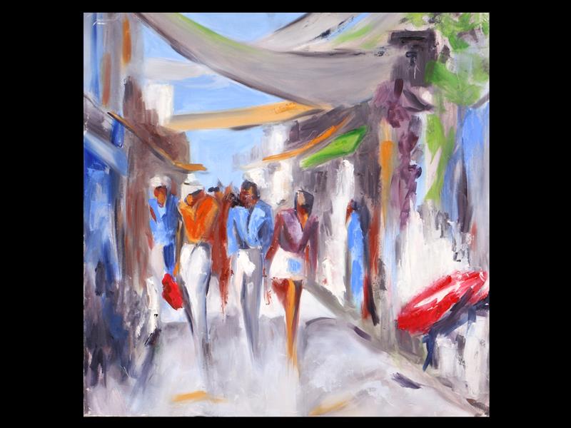 FİGÜRLER. TUAL ÜZERİ YAĞLIBOYA TABLO. İMZASIZ. 70X70 CM.