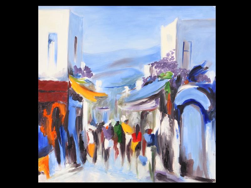 FİGÜRLER. TUAL ÜZERİ YAĞLIBOYA. İMZASIZ. 70X70 CM.