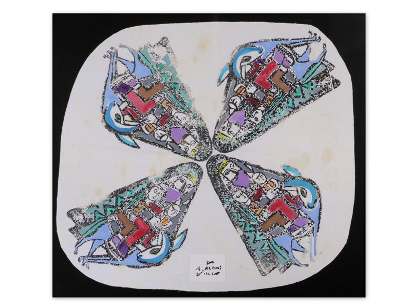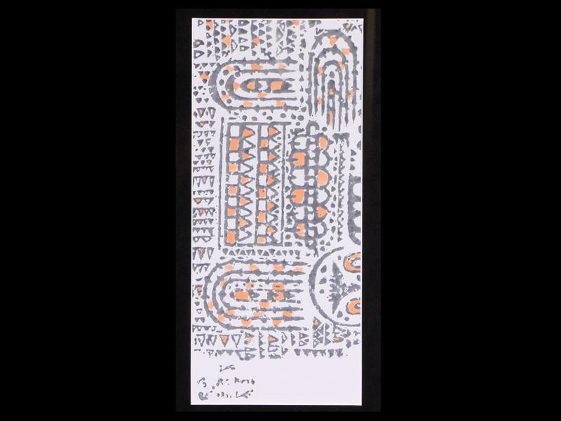 KOMPOZİSYON. BEZ ÜZERİ AHŞAP KALIP BASKI. 1991 T. 42X18 CM.