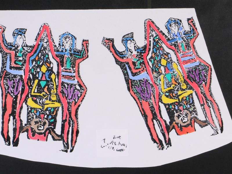HORON OUNAYANLAR. BEZ ÜZERİ AHŞAP KALIP BASKI. 1991 T. 38,5X60 CM