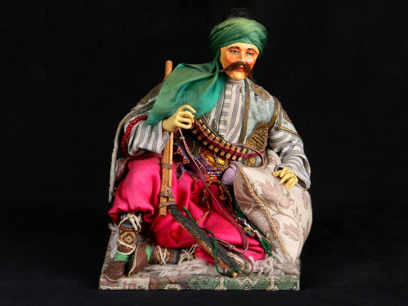 OTURAN EFE FİGÜRÜ. YÜZ VE ELLER PAPİER MACHE ÇALIŞMALI. H 23 CM.