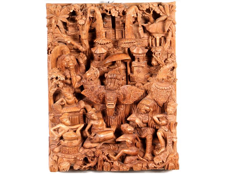 UZAK DOĞU MOTİFLER İLE TEK PARÇA AHŞAP OYMA. 50X8X39 CM.