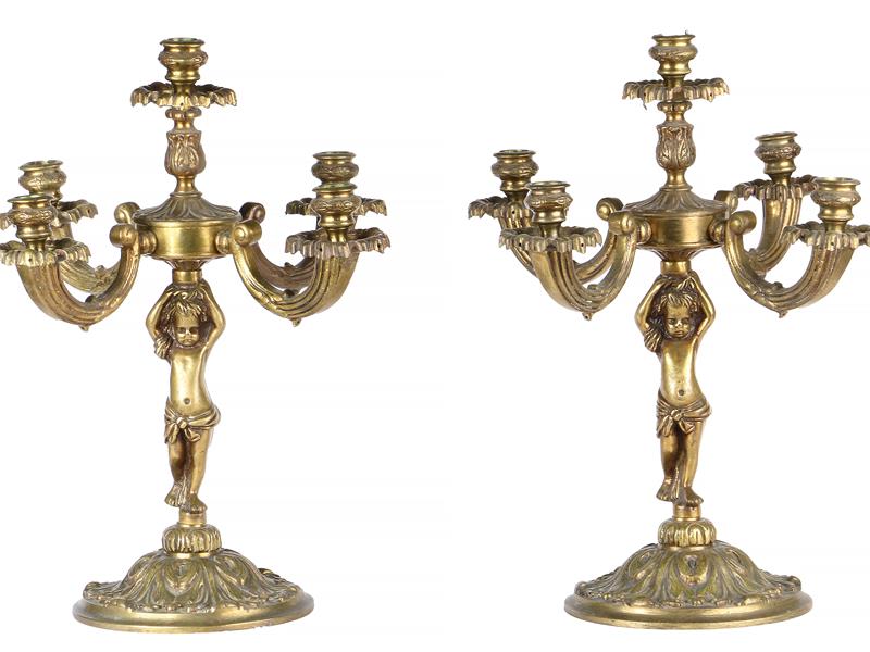 FRANSIZ. 19-20. YY. YUVARLAK KAİDE ÜZERİ MONTELİ. BEBEK MOTİFLİ. 4 KOLLU, 5 MUMLUKLU. H 37 CM.