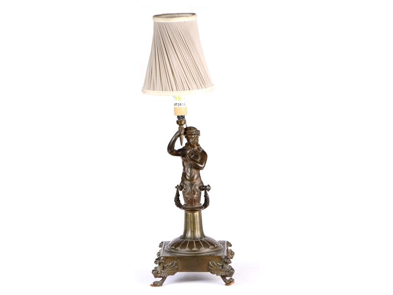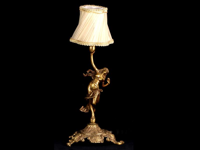MEŞHALE TUTAN GENÇ KIZ HEYKELLİ. ÜSTTE KREM RENKLİ ŞAPKALI. TEK LAMBALI. H 54 CM.