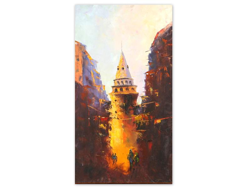 GALATA KULESİ. TUAL ÜZERİ YAĞLIBOYA. İMZASIZ. 90X50 CM.