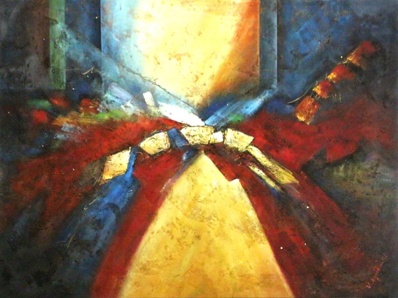KOMPOZİSYON. TUAL ÜZERİ YAĞLIBOYA. İMZALI. 152X203 CM.