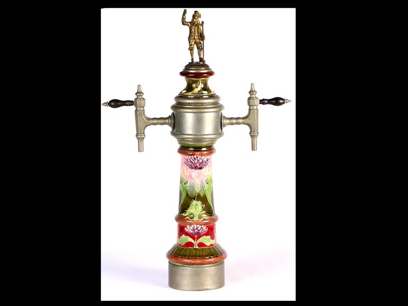 FRANSIZ. 19-20.YY. ART NOUVEAU DÖNEMİ. SERAMİK GÖVDE ÜZERİ KABARTMA RENKLİ ÇİÇEKLERLE DEKORLU. ÜST KISMI BRONZ HEYKEL APLİKELİ. H 70 CM.