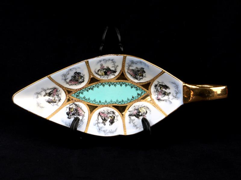 ALMAN BAVARİA İMALAT DAMGALI. 24 AYAR ALTIN KAPLAMA. OVAL FORMLU. İÇ KISIM MUHTELİF FİGÜRLERLE DEKORLU. TEK TUTAMAKLI. UZ 23 CM.
