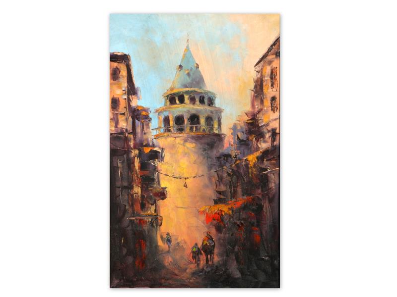 GALATA KULESİ. TUAL ÜZERİ YAĞLIBOYA. İMZASIZ. 80X50 CM.