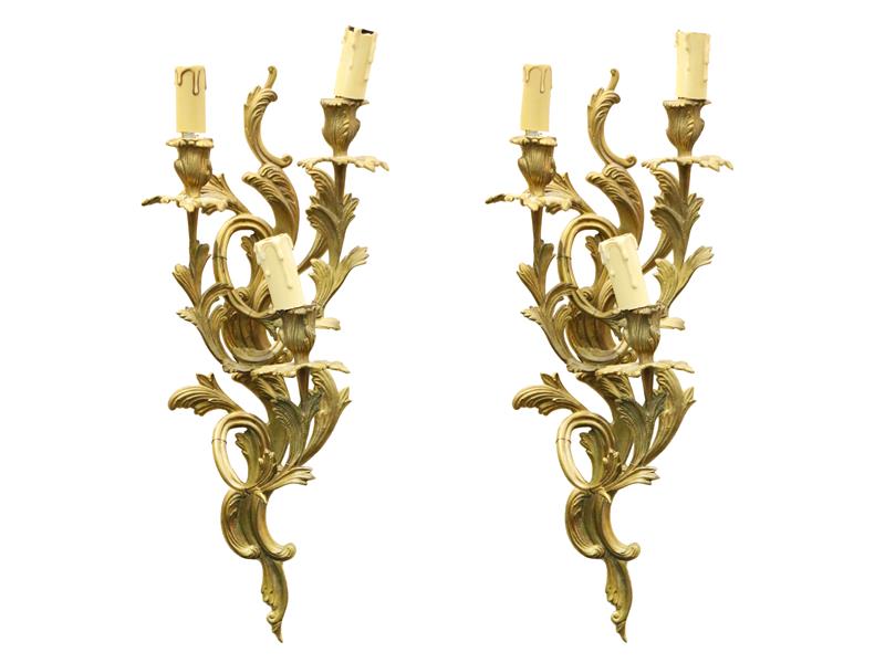 FRANSIZ. ZARİF KIVRIMLI DAL VE YAPRAKLARIN BÜTÜNLEŞTİRDİĞİ 3 KOLLU, 3 LAMBALI. H 51 CM.