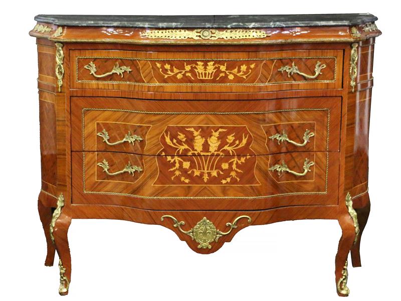 FRANSIZ. 19-20.YY. MERMER TABLALI. DİKDÖRTGEN FORMLU. 3 ÇEKMECELİ. BRONZ APLİKELİ. MARKÜTERİ ÇALIŞMALI. 120X92X46 CM.