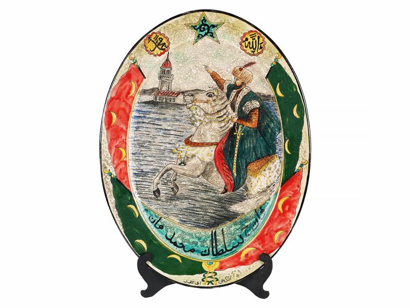 FATİH SULTAN MEHMET HAN. OVAL FORMLU. EL BOYAMA. 59X45 CM.