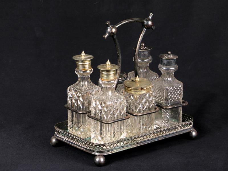 İNGİLİZ İMALAT DAMGALI. DİKDÖRTGEN FORMLU GÜMÜŞ KAPLAMA KAİDE İÇERİSİNDE 6 ADET BAHARATLIK. H 22 CM. 21-14 CM.