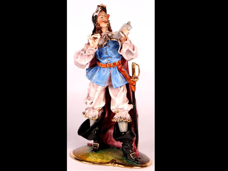 İTALYAN. İMALAT DAMGALI. SİLAHŞÖR. CYRANO DE BERGERAC FİGÜRÜ. EL BOYAMA. H 29 CM.