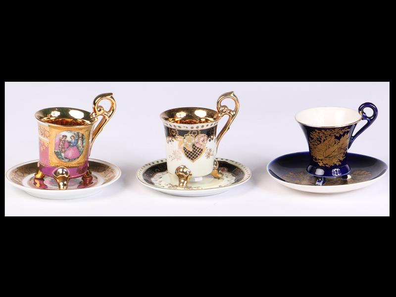MUHTELİF FİGÜR, ÇİÇEK VE ALTIN YALDIZ EL DEKORLU. 2 ADET FİNCAN İÇİ YOĞUN ALTIN SIVAMA.