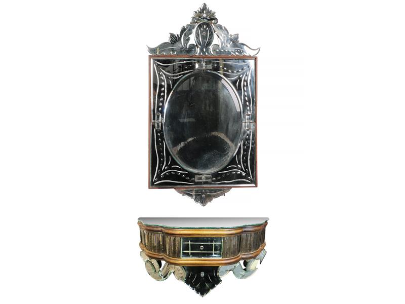 DİKDÖRTGEN FORMLU. MOTİFLİ PARÇA AYNALARLA BÜTÜNLEŞMİŞ. AYNA 97X52 CM. TIRNAK 54X27X25 CM.