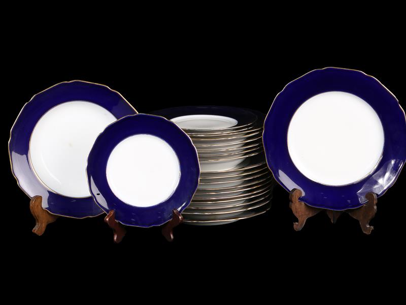ALMAN. MADELEİNE. HUTSCHENREUTHER HOKENBERG İMALAT DAMGALI. KOBALT ZEMİN ÜZERİ ALTIN YALDIZ DEKORLU. ÇAP 19,5-23,5 CM.