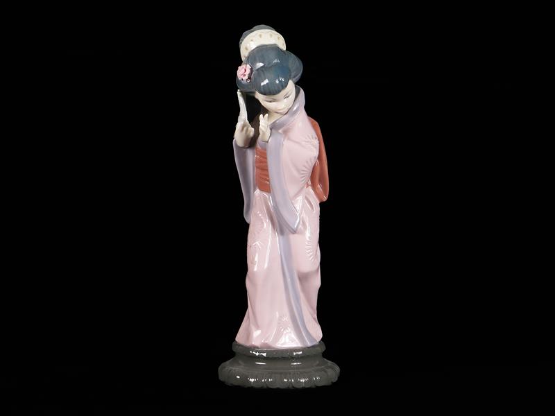 İSPANYA. LLADRO İMALAT DAMGALI. YELPAZELİ UZAK DOĞU FİGÜR. H 29 CM.