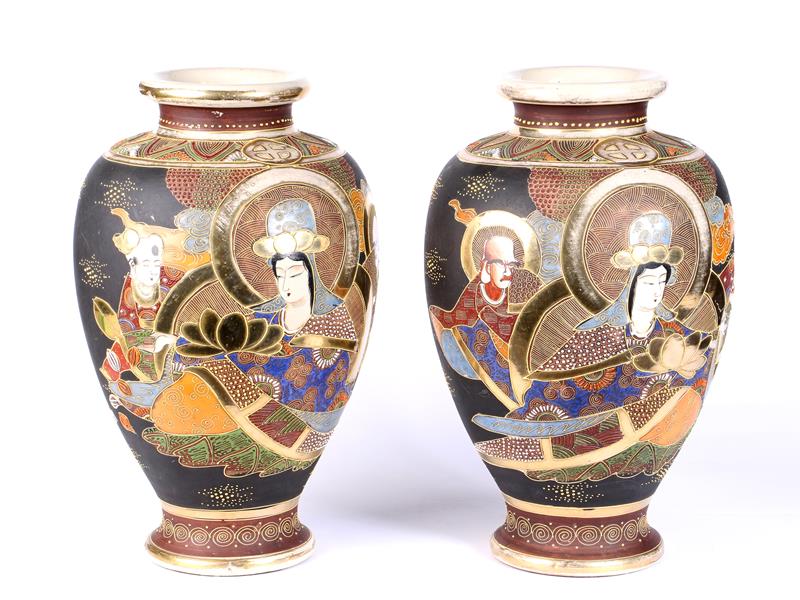 20.YY. JAPON. MALAT DAMGALI. ŞİŞKİN GÖVDELİ. UZAKDOĞU FİGÜRLERLE DEKORLU. RENKLİ ALTIN YALDIZ EL DEKORLU. H 35 CM. ÇAP 12,5 CM.
