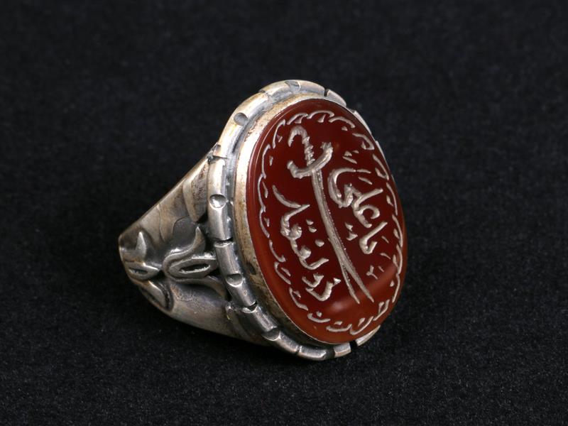 925 AYAR GÜMÜŞ DAMGALI. OVAL AKİK TAŞ ÜZER YA ALİ ZÜLFİKAR YAZILI. TOPLAM AĞIRLIK 15 GR.