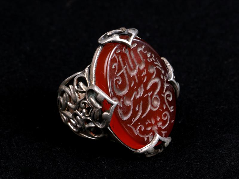 OVAL FORMLU AKİK TAŞ ÜZERİ MUHAMMED ALLAHIN ELÇİSİDİR YAZILI. TOPLAM AĞIRLIK 18 GR.