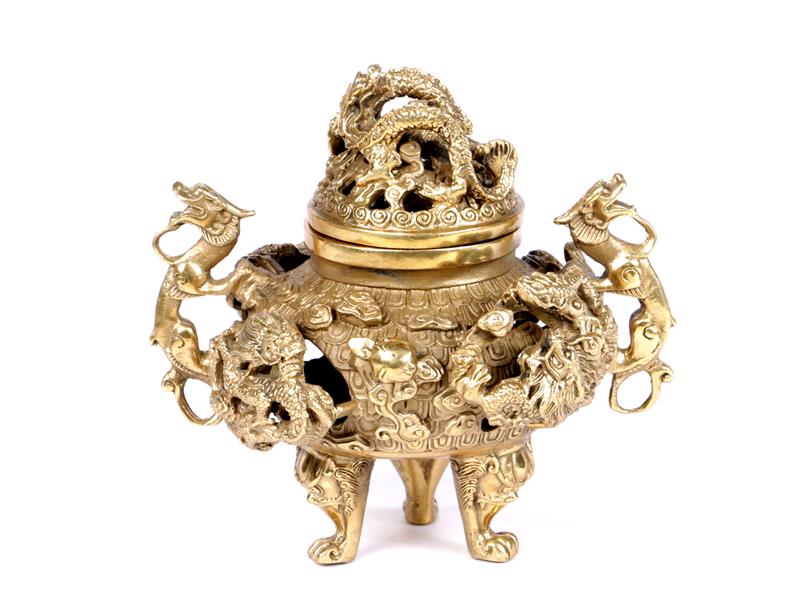 KABARTMA VE OYMA İŞÇİLİKLİ. UZAKDOĞU EJDER MOTİFLERİ İLE DEKORLU. 17X14 CM.
