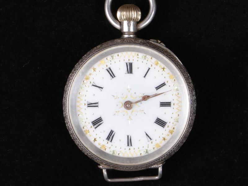 935 GÜMÜŞ DAMGALI. ÜSTTEN KURMALI. PORSELEN MİNE KADRANLI. 26812 SERİ NUMARALI. TOZ KAPAĞI GÜMÜŞ. TÜM GÖVDE KABARTMA İŞÇİLİKLİ. ÇAP 33 MM.