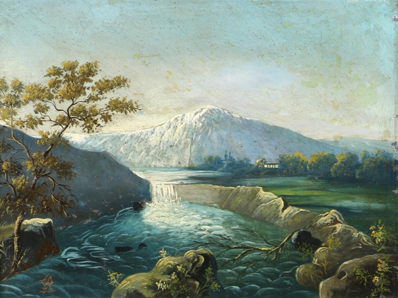 PEYZAJ. MUKAVVA TUAL MARUFLE ÜZERİ YAĞLIBOYA. İMZASIZ. 29X45 CM.