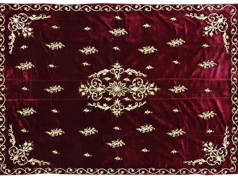 19-20.YY. BORDO KADİFE ÜZERİ ALTIN SIRMA İŞLEMELİ. 190X140 CM.