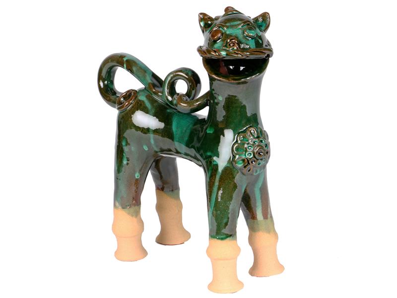 ASLAN FİGÜRÜ. KIRMIZI HAMURLU. ÜZERİ ŞEFFAF SIRLI. 22X20X8 CM.