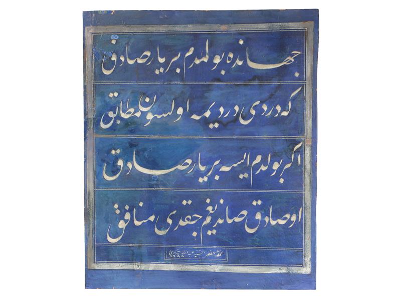 MEALEN - CİHANDA BULAMADIM BİR YAR-İ SADIK. Kİ DERDİ DERDİME OLSUN MUTABIK. EĞER BULDUM İSE BİR YAR-İ SADIK. O SADIK SANDIĞIM ÇIKTI MÜNAFIK. TARİH HİCRİ 1299-MİLADİ 1883. SEYYİD ABDULLAH ŞÜKRİ KETEBELİ. 36X30 CM. (ÜNLÜ HATTAT FİLİBELİ BAKKAL ARİF EFENDİ NİN AYNI ŞİİRİ ÇALIŞMIŞ OLDUĞU BİLİNMEKTEDİR.)