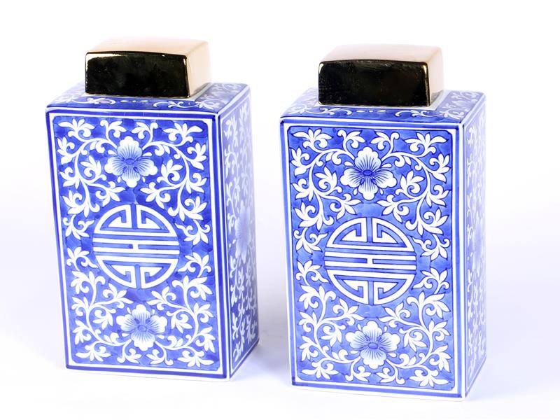 DİKDÖRTGEN FOMLU, KOBALT ZEMİN ÜZERİ BEYAZ ÇİÇEKLERLE DESENLİ. ALTIN YALDIZ KAPAKLI. 14X25X9 CM.