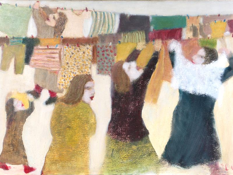 ÇAMAŞIR ASAN KADINLAR. TUAL YAĞLIBOYA. İMZALI. 2017 T. 50X70 CM.