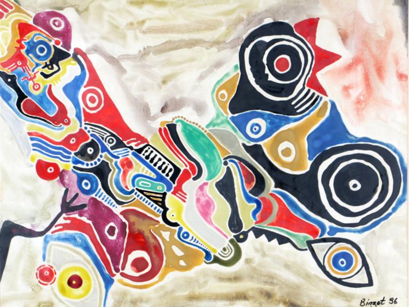 KOMPOZİSYON. KARTON ÜZERİ SULUBOYA. İMZALI. 1996 T. 39X49 CM.