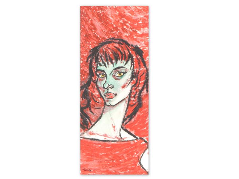 PORTRE. KARTON ÜZERİ KARIŞIK TEKNİK. İMZALI. 28X11 CM.