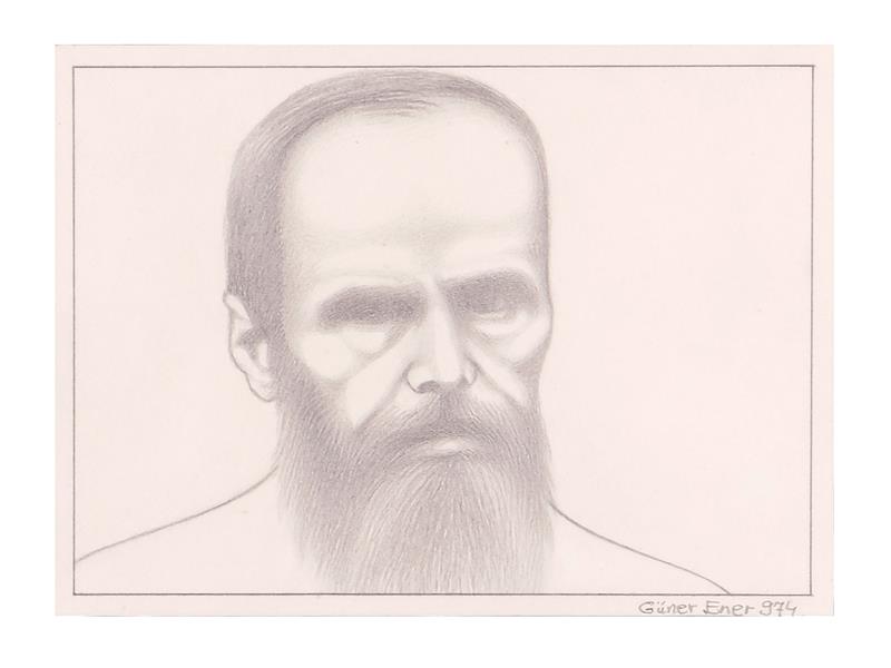 GÜNER ENER PORTRESİ. KARTON ÜZERİ KARIŞIK TEKNİK. İMZALI. 2010 T. 48X33 CM.
