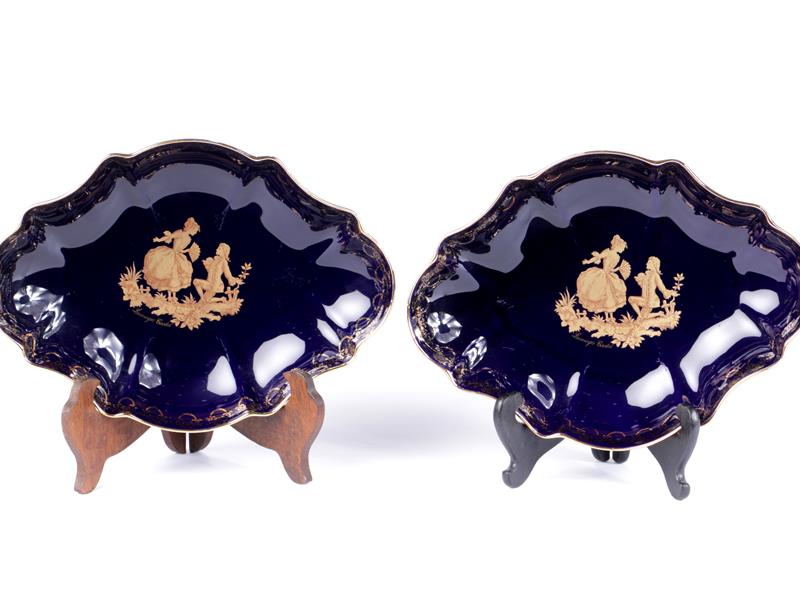 FRANSIZ. LİMOGES CASTEL İMALAT DAMGALI. OVAL FORMLU. TABAK İÇİ FİGÜRLERLE , TABAK ÇEVRESİ ALTIN YALDIZ EL DEKORLU. 20-28 CM.