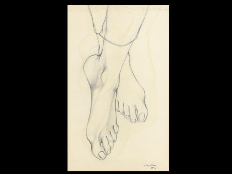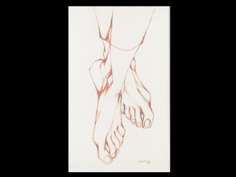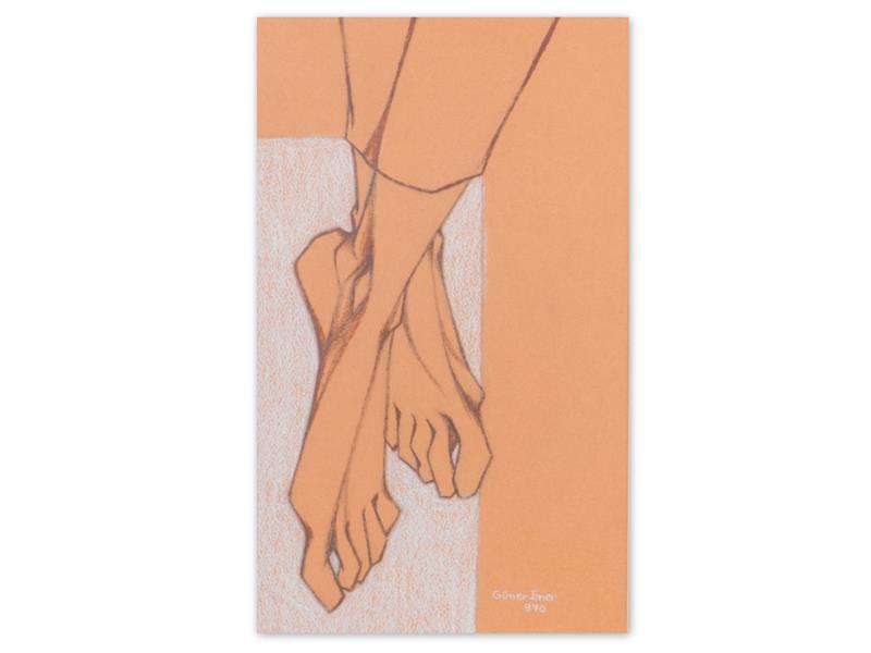 AYAKLARIM. RESİM KAĞIDI ÜZERİ YAĞLI PASTEL. İMZALI. 1970 T. 32X19 CM.
