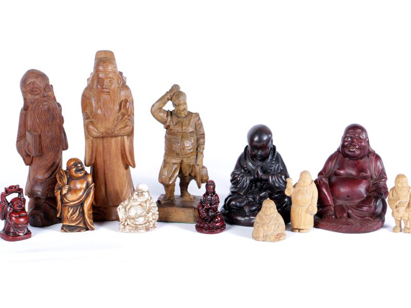 UZAKDOĞU. 6 ADET AHŞAP VE 6 ADET DÖKÜM. MUHTELİF FİGÜRLER. 5 - 19 CM.