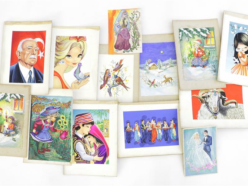 MUHTELİF . RESİM KAĞIDI ÜZERİ SULUBOYA TABLO. 25X 17,5 CM. 17,5X25 CM.