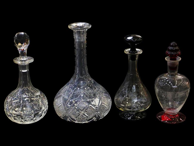 2 ADEDİ KESME KRİSTAL. H 22 - 24 CM. 2 ADET GRAVE İŞÇİLİKLİ CAM KARAF H 20-21,5 CM.