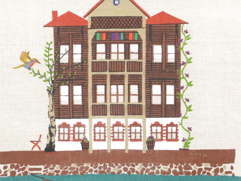 ESKİ EV. ÇUHA ÜZERİ BASKI. 37/46 BASKI. İMZALI. 1994 T. 30X33 CM.