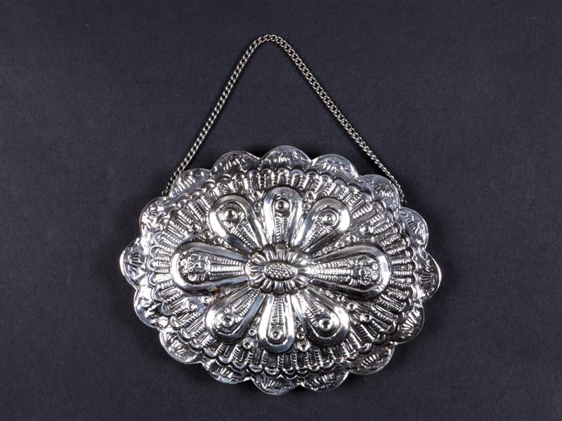 FRANSIZ. 900 AYAR GÜMÜŞ DAMGALI. OVAL FORMLU. ÇİFT TUTAMAKLI. KABARTMA İŞÇİLİKLİ. 39X19 CM. TOPLAM AĞIRLIK 660 GR.