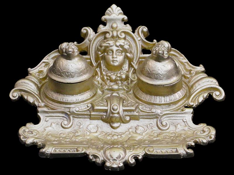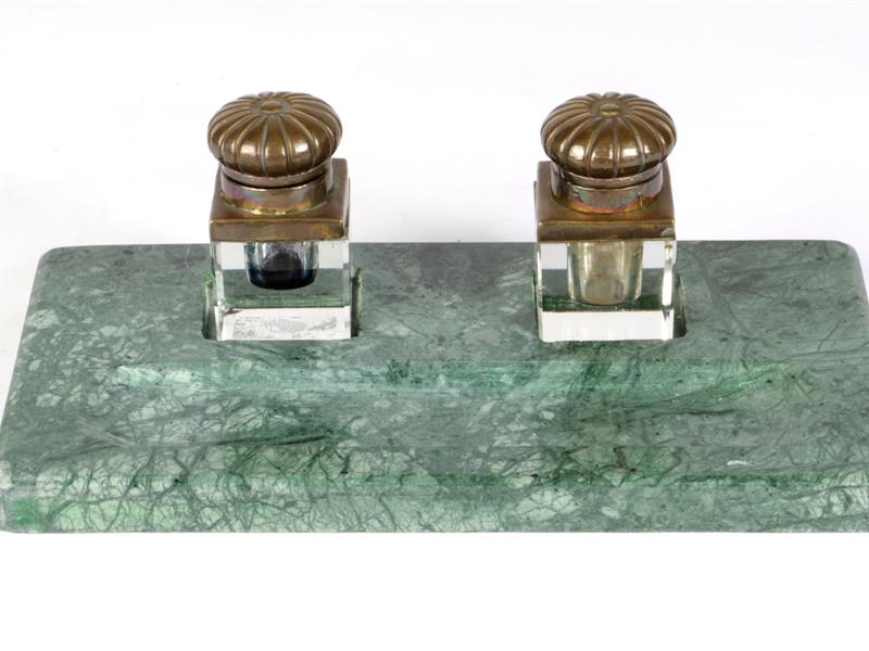 DİKDÖRTGEN KAİDELİ. ÇİFT KRİSTAL MÜREKKEP HAZNELİ. HAZNE KAPAKLARI BRONZ. 28X16X10 CM.