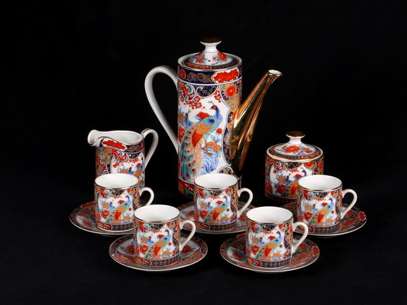 JAPON. İMALAT DAMGALI. 5 ADET PORSELEN FİNCAN VE TABAĞI. SÜTLÜK, ŞEKERLİK VE KAHVEDAN.