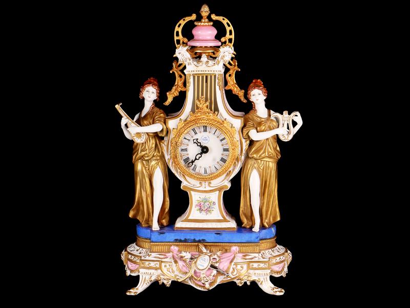 İTALYAN. TİCHE İMALAT DAMGALI. İKİ KENARDA MÜZİSYEN KADIN HEYKELLERİ VE BRONZ MOTİFLERLE APLİKELİ.