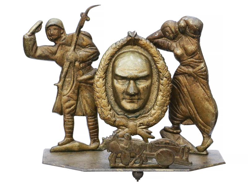 AYYILDIZ ÇELENK İÇERİSİNDE ATATÜRK BÜSTÜ VE KÖYLÜLER. 22,5X20X9 CM.