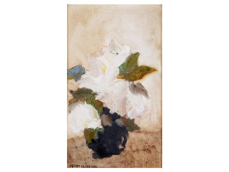 NATÜRMORT. DURALİT ÜZERİ YAĞLIBOYA. İMZALI. 1980 T. 50X29 CM.