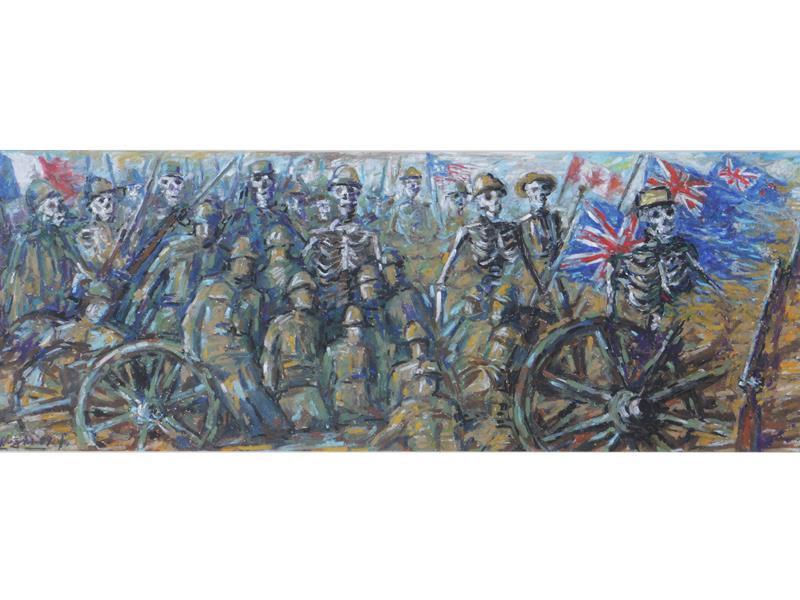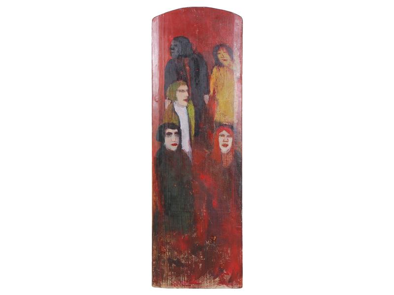 FİGÜRLER. AHŞAP ÜZERİ YAĞLIBOYA. İMZALI. 2009 T. 103X33 CM.